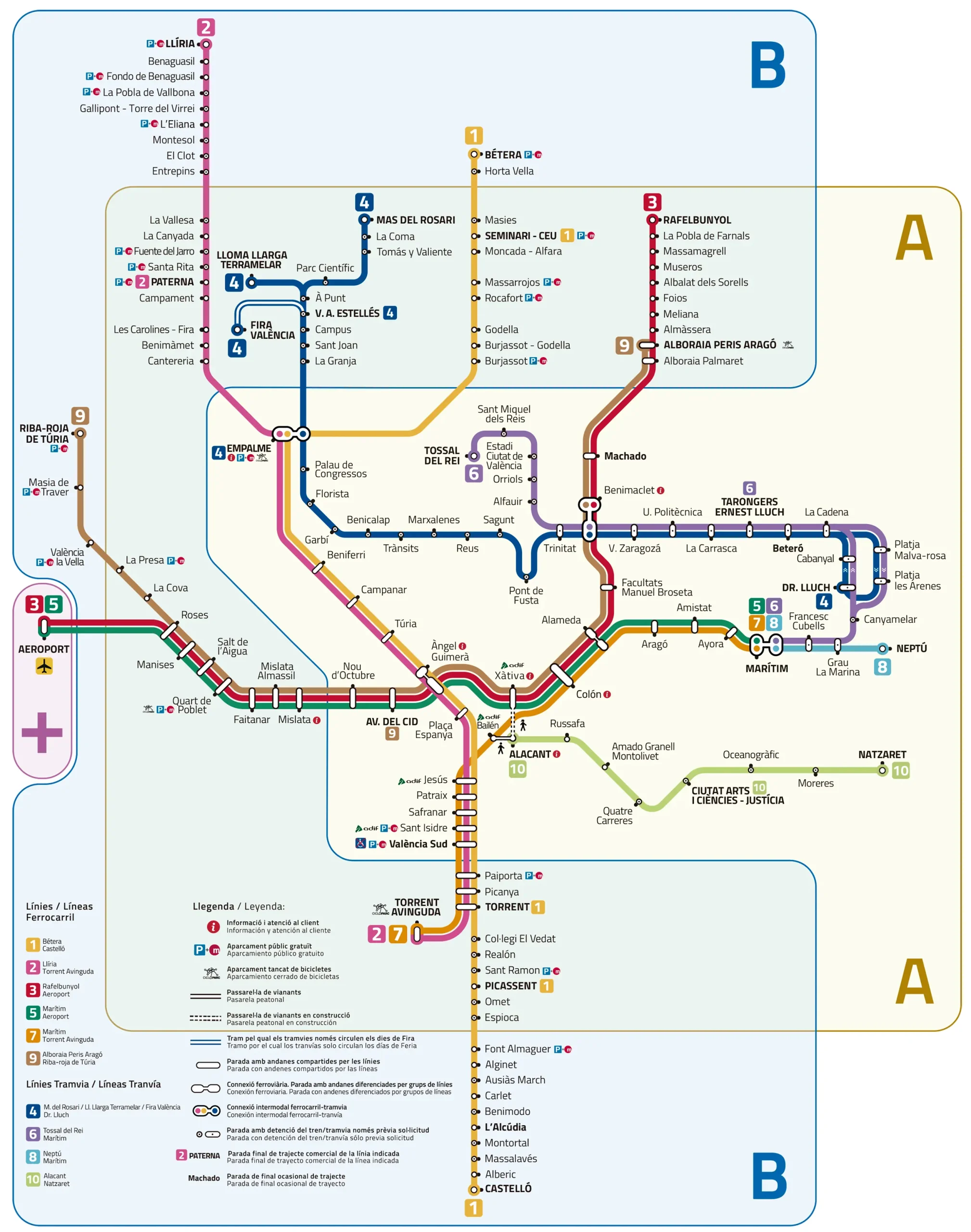 Sono diverse le zone in cui è suddiviso il servizio trasporti della città di Valencia. Di gran interesse turistico la zona "AB+" che include il tragitto aeroporto-centro città e viceversa. La zona più centrale, zona A, permette di raggiungere tutti i principali luoghi di interesse della città di Valencia.